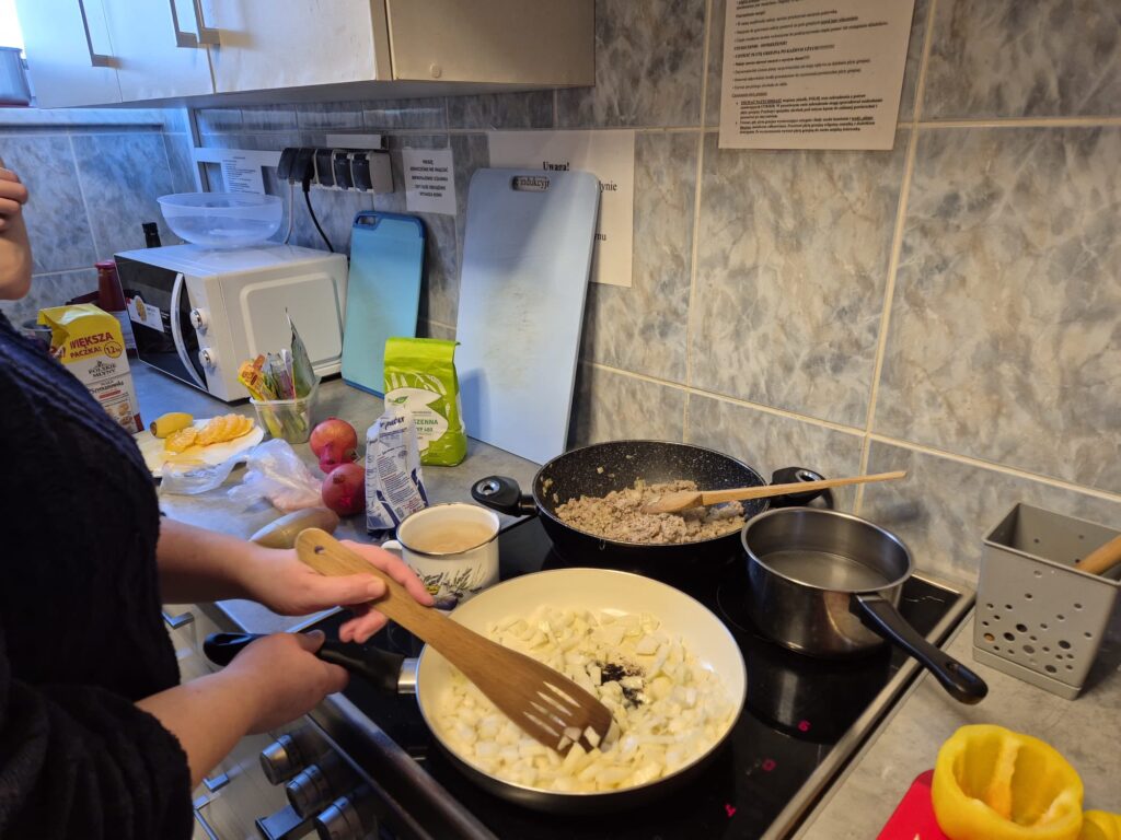 Były warsztaty, rozmowy… a potem coś bardzo zwyczajnego, lepienie pierogów. Mieszkanki same się zorganizowały. Przygotowały farsz, ciasto a potem usiadły razem do stołu. I było