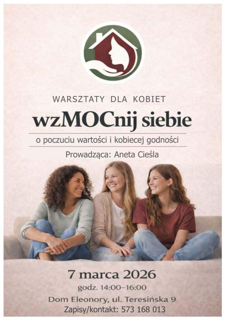 Cykl otwieramy wyjątkowym spotkaniem w przededniu Dnia Kobiet 7 marca warsztatami „wzMOCnij siebie”, poświęconymi poczuciu wartości i kobiecej godności.